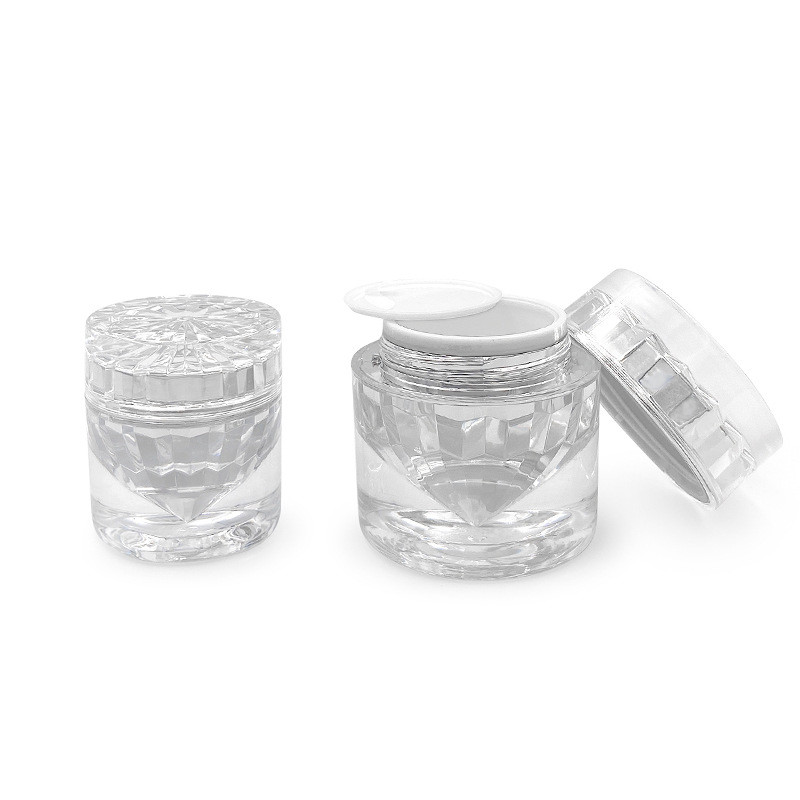 Shape: The jar is designed in the shape of a diamond, featuring multiple facets that resemble the appearance of a cut gemstone. This unique shape adds an aesthetic appeal and a touch of luxury to the packaging.